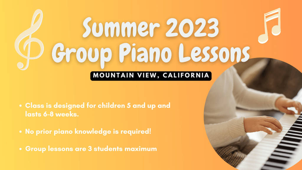 Our group piano lessons are for ages 5 and up––groups are 3 children maximum. Children don’t need to have prior knowledge of piano to participate!